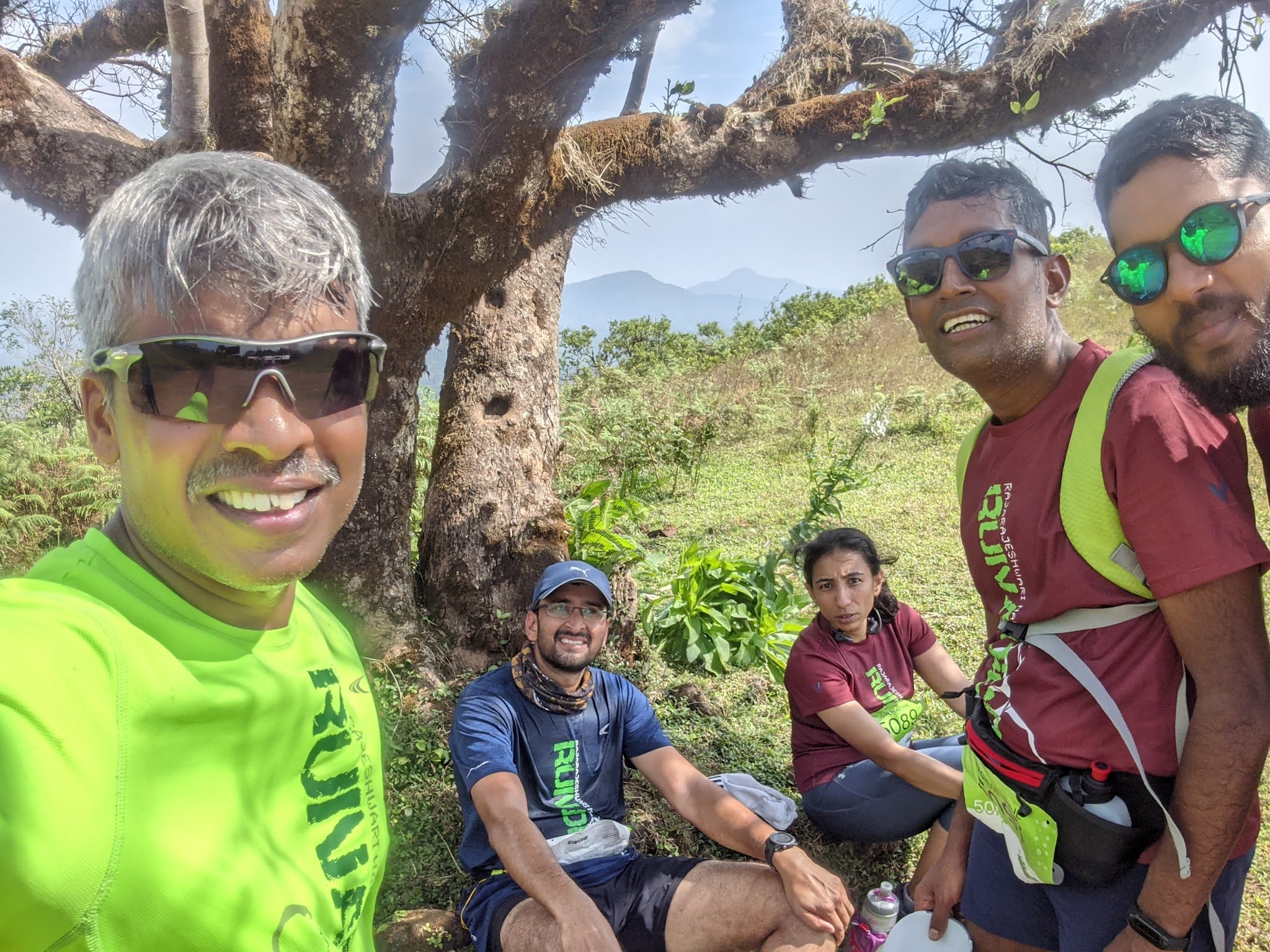 A big fall into the wilderness of ombattugudda and a never-ending climb summarizes this journey. Ravi makes any run easy for you, I was in the safe hands. The sun was out, ready to play his role. A stream of water was a blessing to cool the legs and head. We spent some time playing in water and continued our arduous journey. The group had spilt by now. I was in the company of Dr Anuradha and Ravi Yajaman, strategizing, fighting with Ravi Y 😛 We met Dr Girish and stuck together for a while.